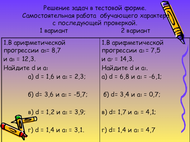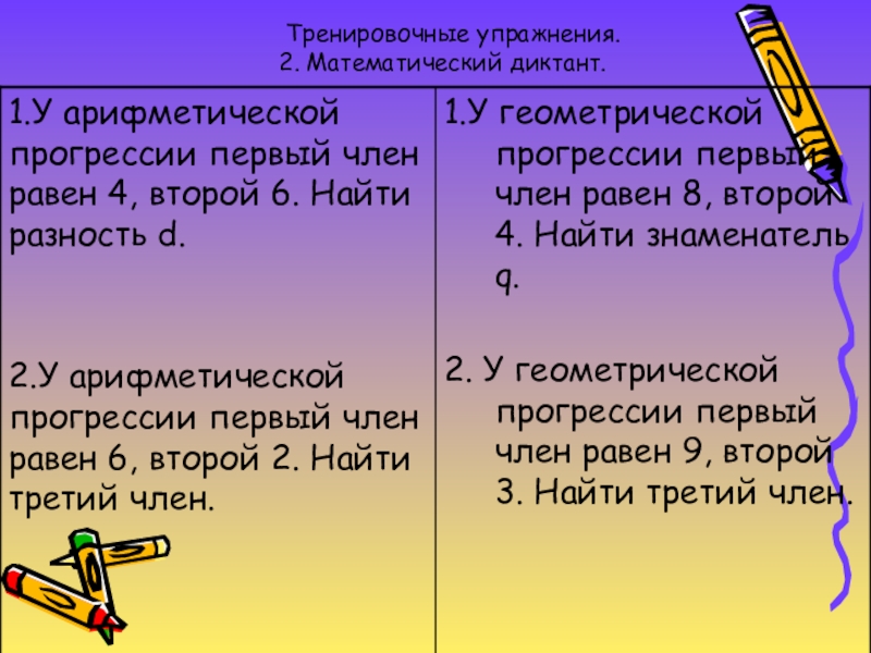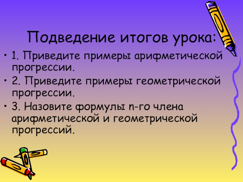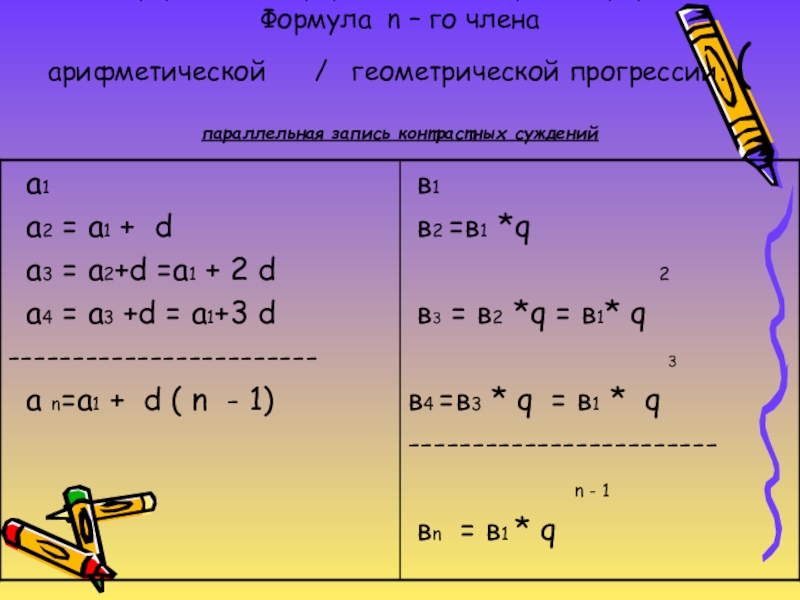 Формулы n – го члена арифметической и геометрической прогрессий.