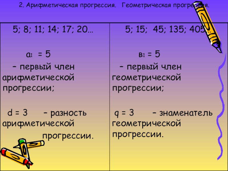 и геометрической прогрессий.