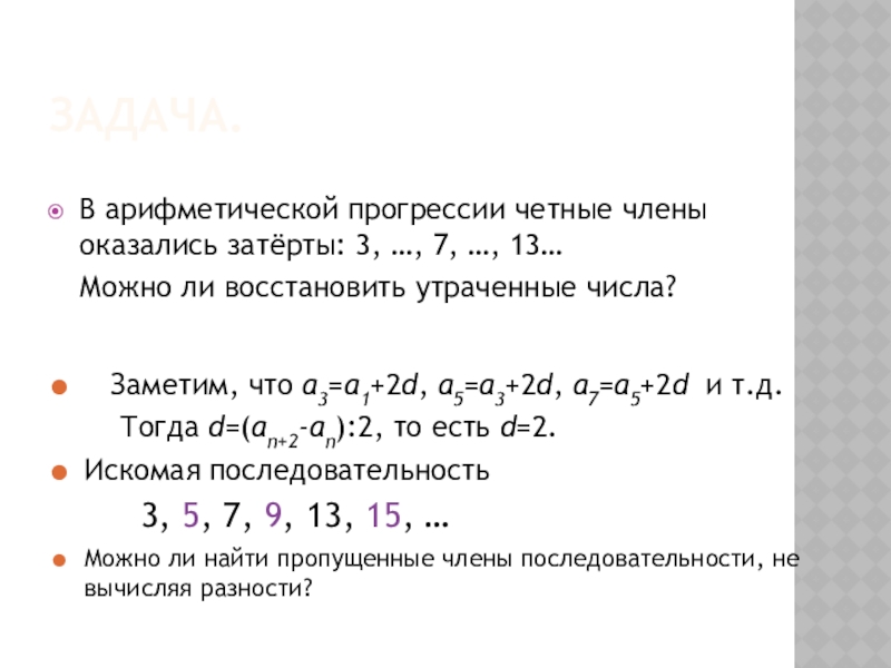 Можно ли найти пропущенные члены последовательности, не вычисляя разности?