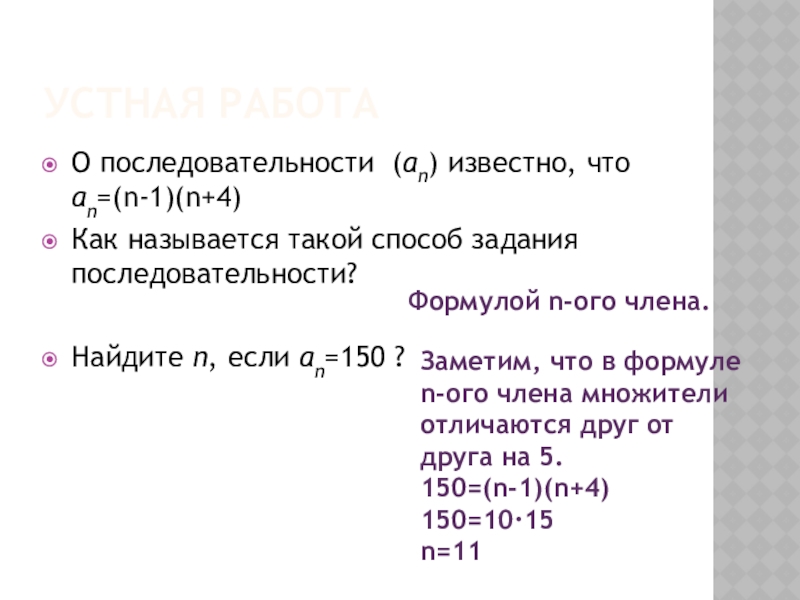 Заметим, что в формуле n-ого члена множители отличаются друг от друга на 5.