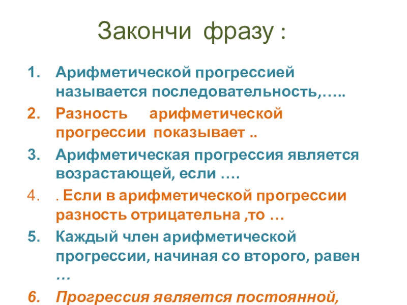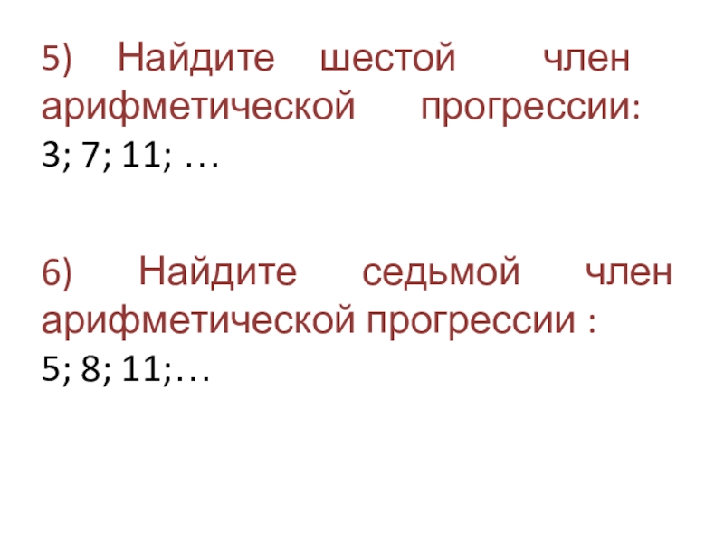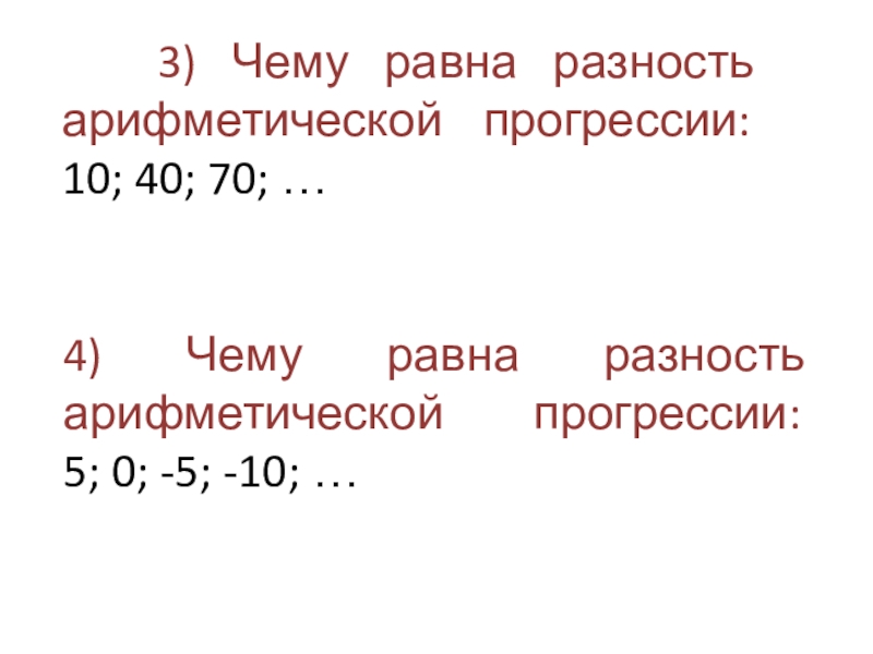 4) Чему равна разность арифметической прогрессии: 5; 0; -5; -10; …