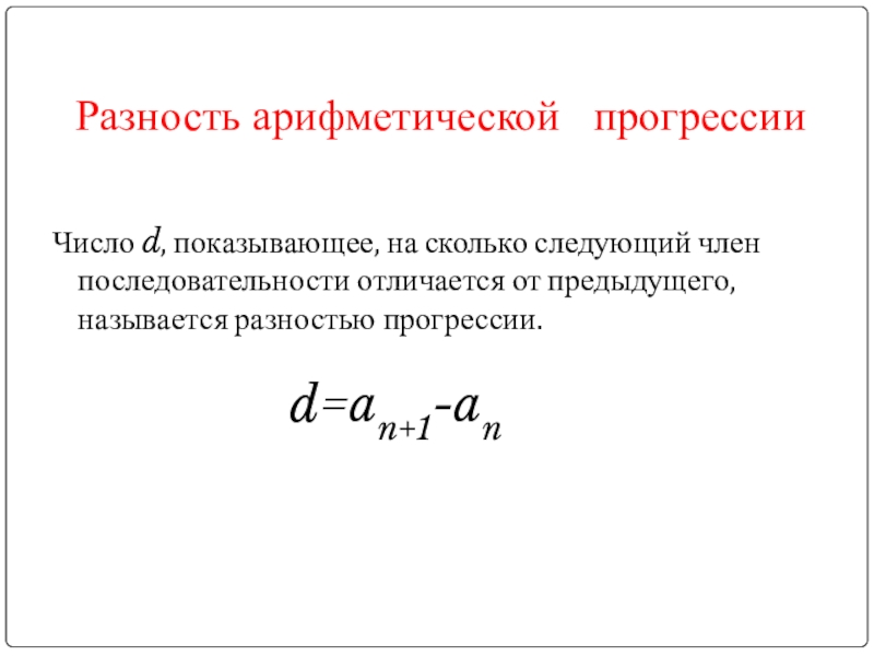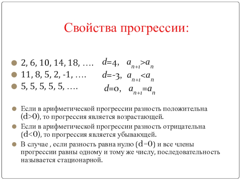 В случае , если разность равна нулю (d=0) и все члены прогрессии равны одному и тому же числу, последовательность называется стационарной.