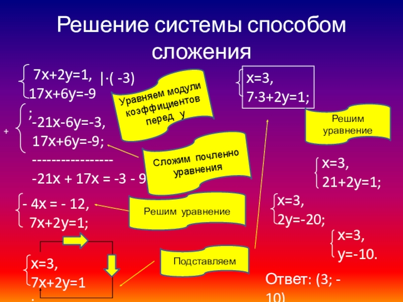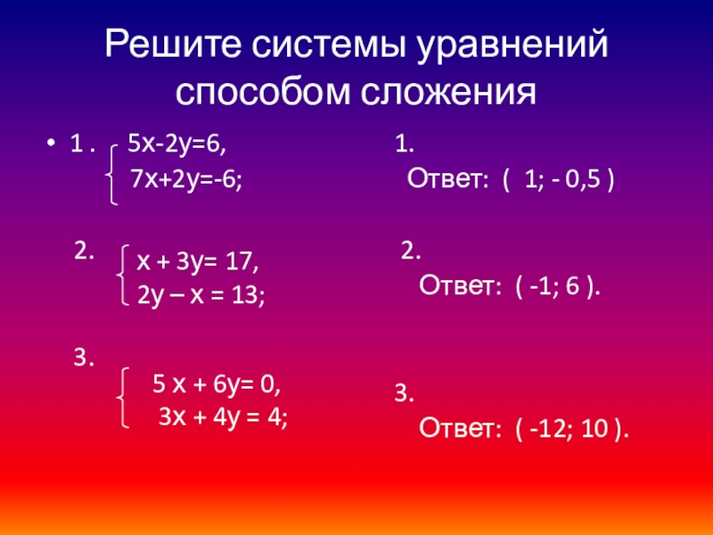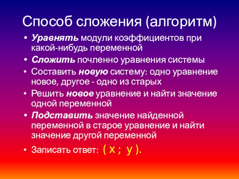 способом сложения, в необходимых случаях приводя