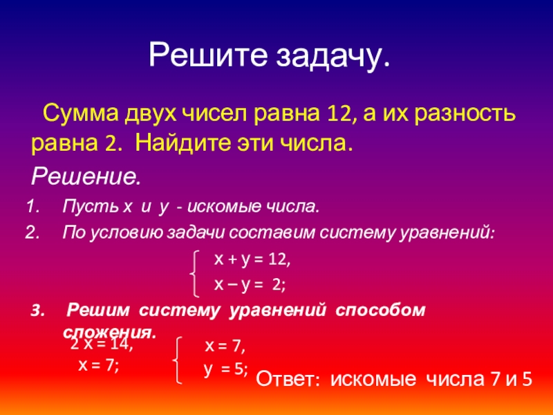 Ответ: искомые числа 7 и 5