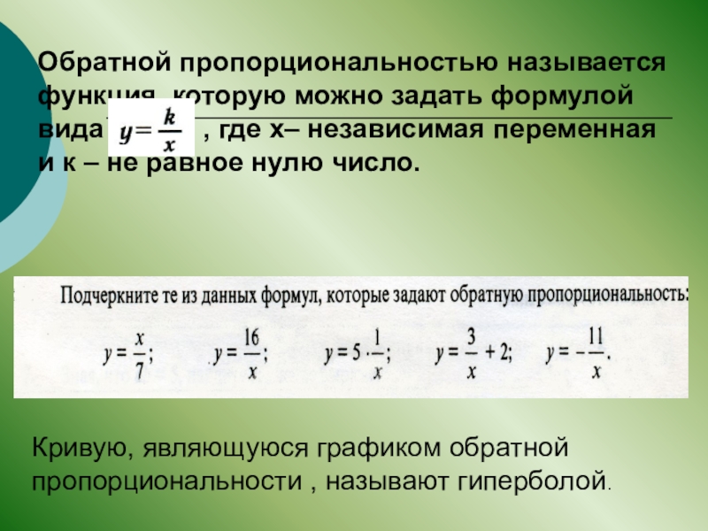 Кривую, являющуюся графиком обратной пропорциональности , называют гиперболой.