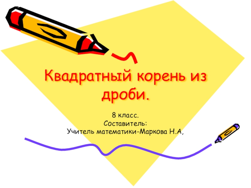 Квадратный корень из дроби.8 класс.Составитель: Учитель математики-Маркова Н.А,