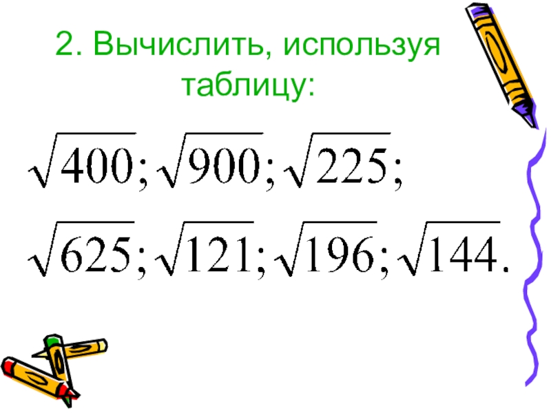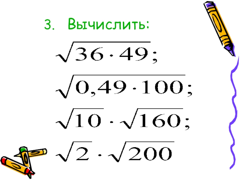по темам: «Арифметический квадратный корень», «Квадратный корень из степени», «Квадратный корень из произведения». Закрепить навыки быстрого счета.