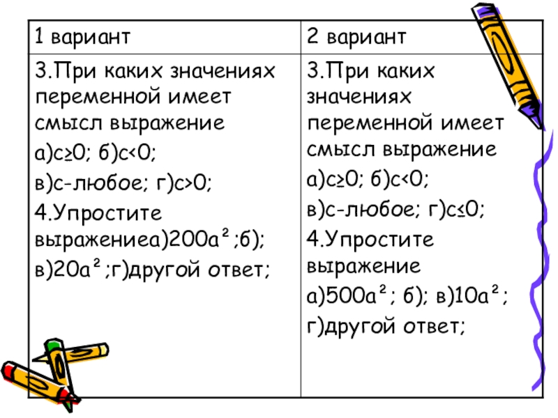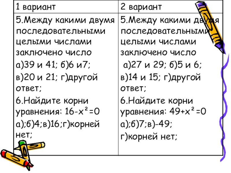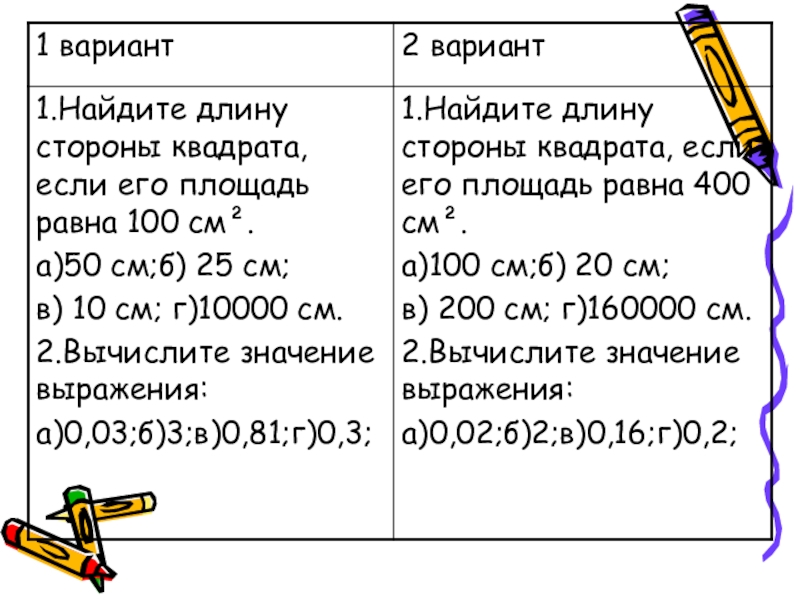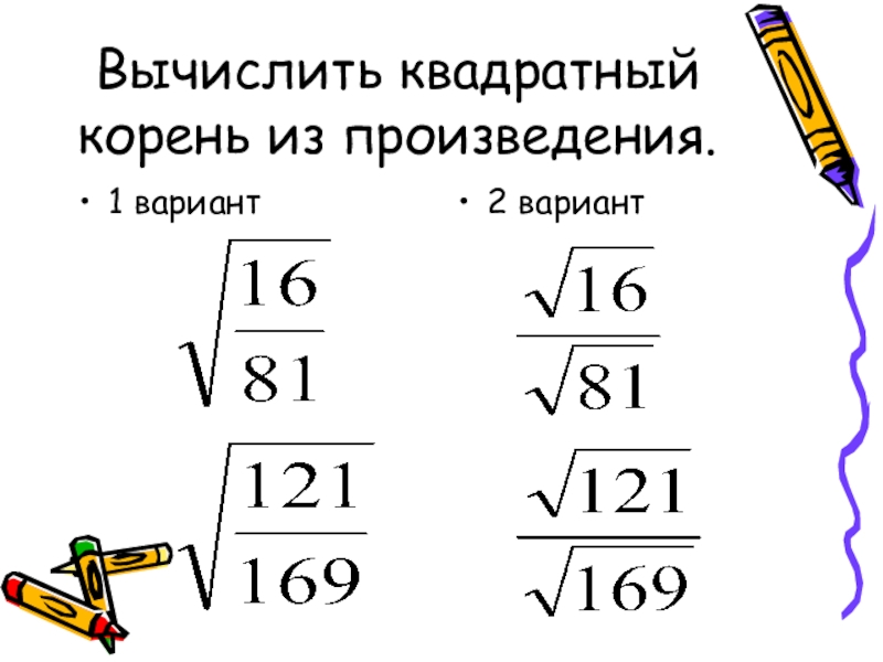 Вычислить квадратный корень из произведения.1 вариант2 вариант