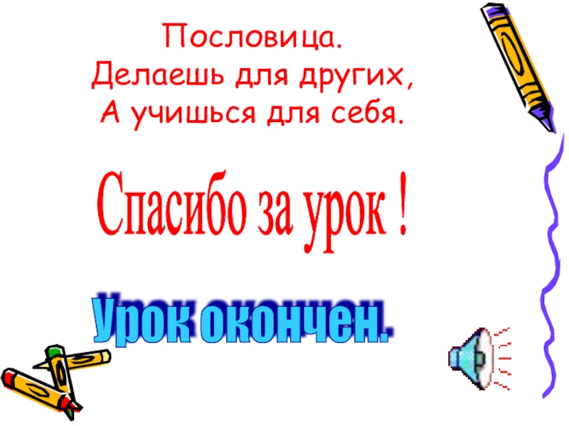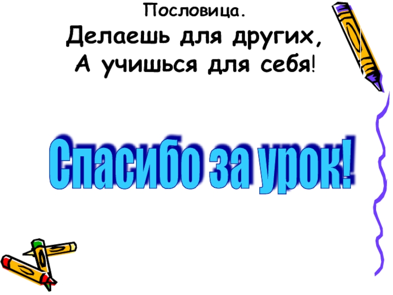 Пословица. Делаешь для других,  А учишься для себя.Спасибо за урок ! Урок окончен.