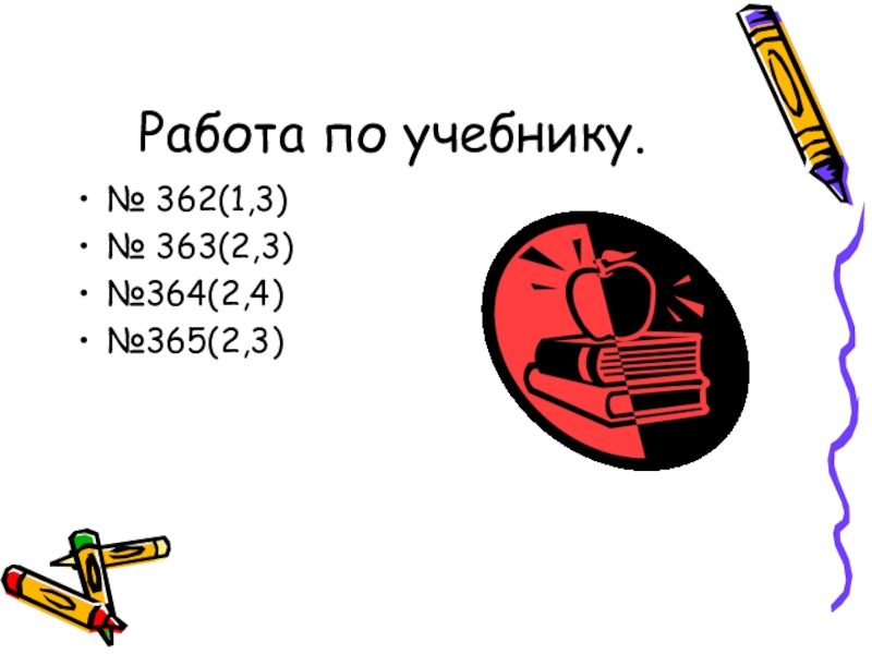 Работа по учебнику.№ 362(1,3)№ 363(2,3)№364(2,4)№365(2,3)