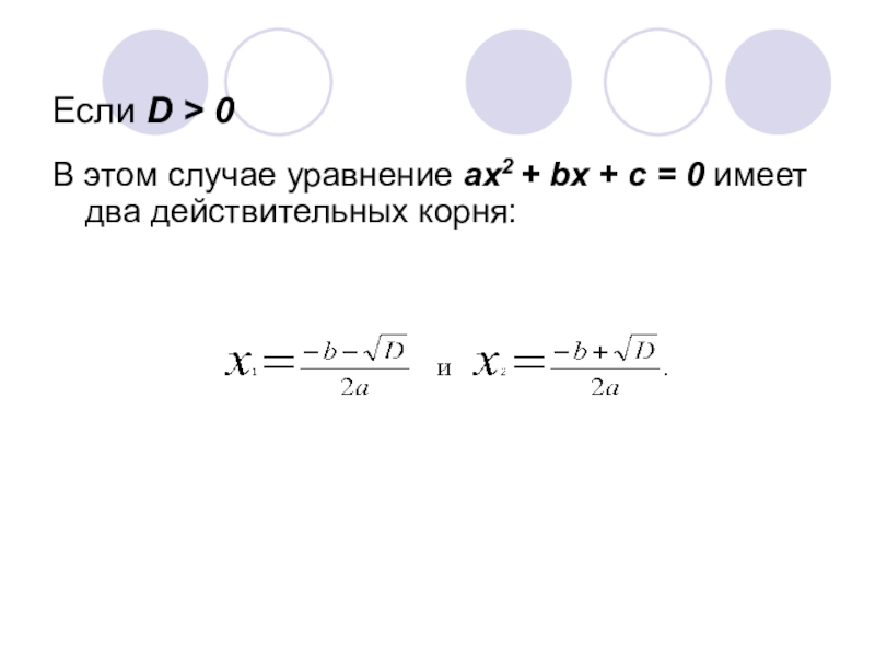 Если D > 0В этом случае уравнение ах2 + bх + с = 0 имеет два действительных