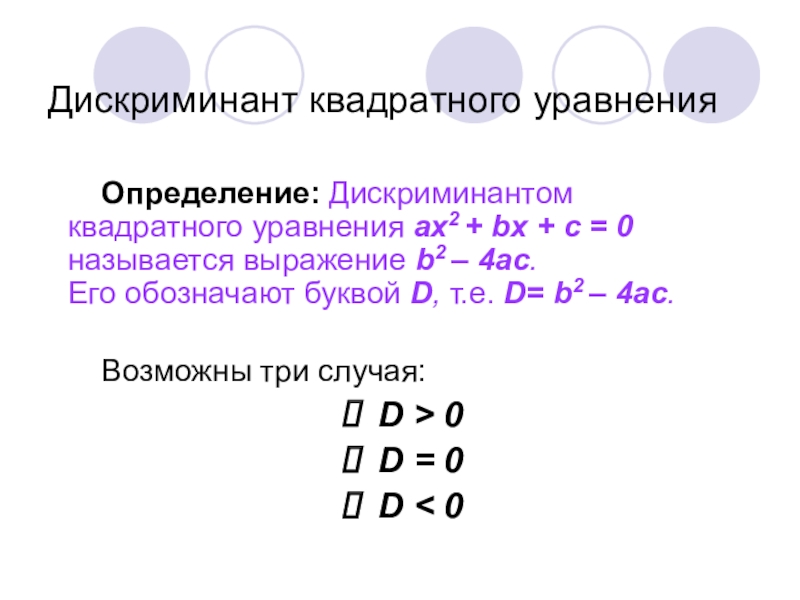 = 0 называется выражение b2 – 4ac. Его обозначают буквой D, т.е. D= b2 – 4ac.