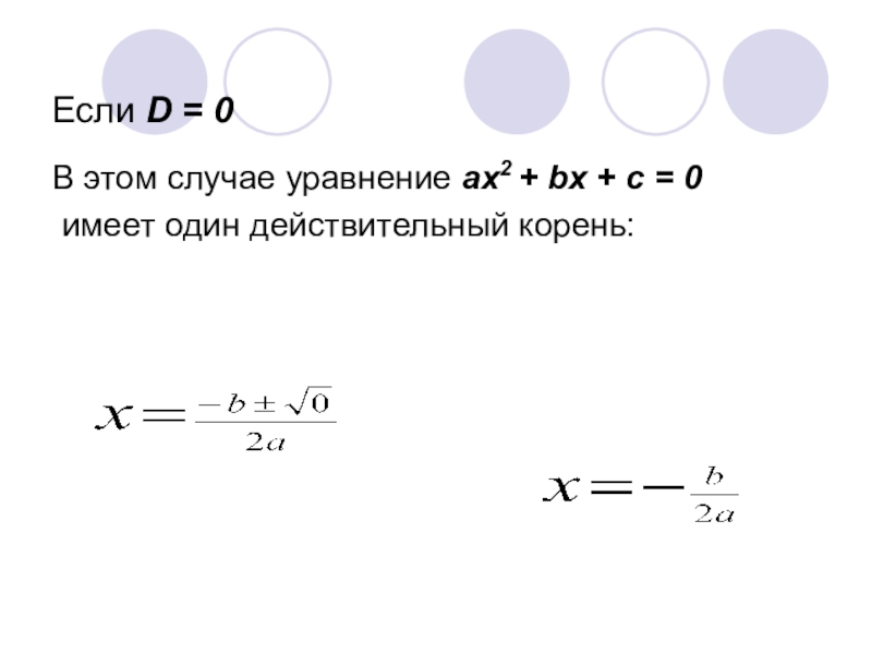 Если D = 0В этом случае уравнение ах2 + bх + с = 0 имеет один действительный
