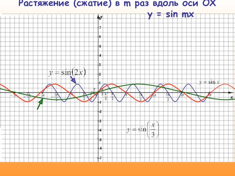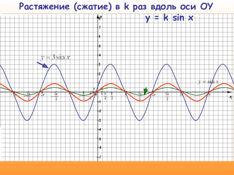 2) k = 3, значит график функции y = sin x растягиваем в 3 раза по оси OY