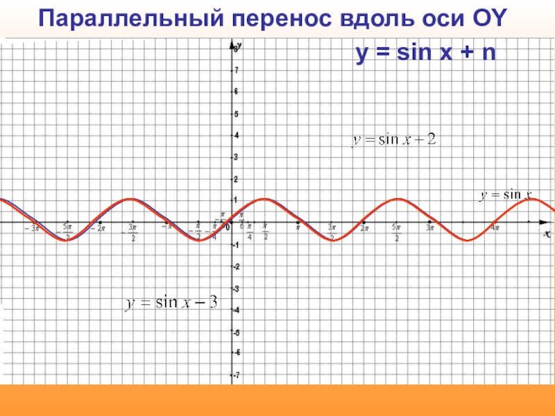 y = 3 sin (x – π/2) параллельно переносим вдоль оси OY на 5 единиц вверх
