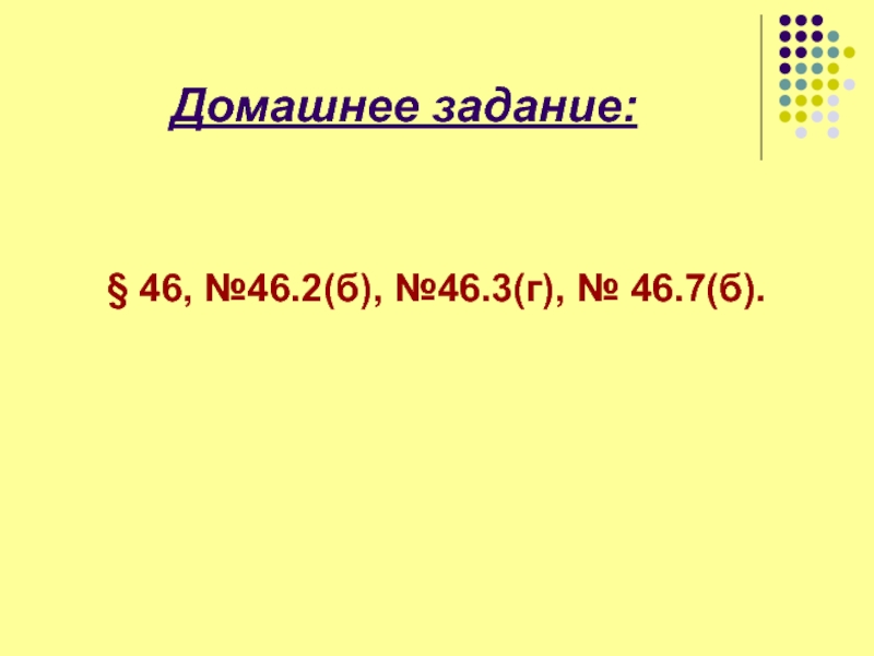 Домашнее задание:§ 46, №46.2(б), №46.3(г), № 46.7(б).