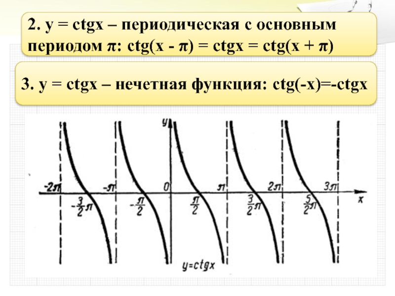 3. y = ctgx – нечетная функция: ctg(-x)=-ctgx