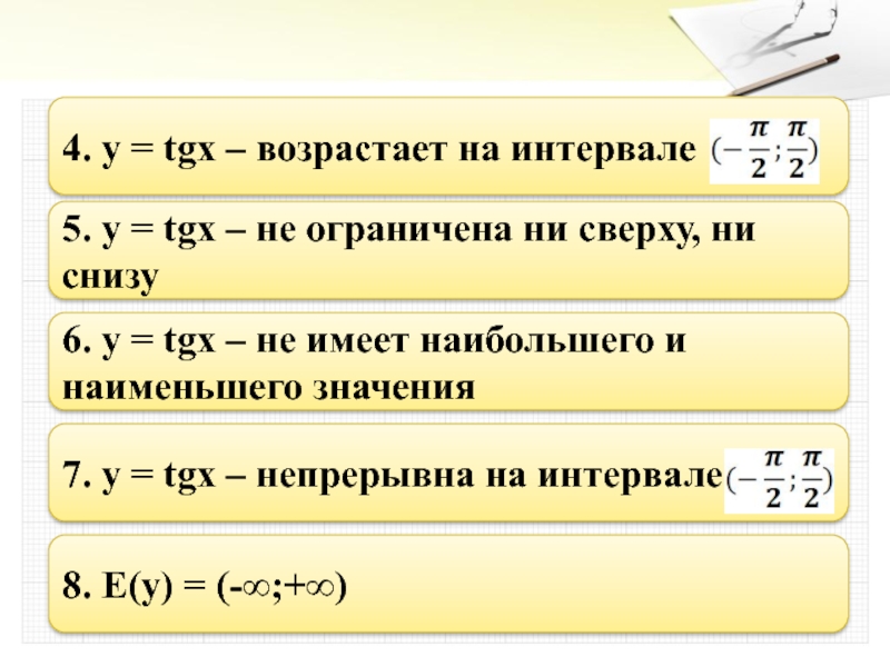 6. y = tgx – не имеет наибольшего и наименьшего значения