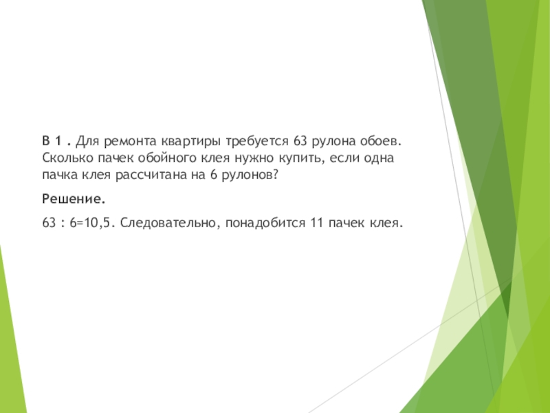 B 1 . Для ремонта квартиры требуется 63 рулона обоев. Сколько пачек обойного клея
