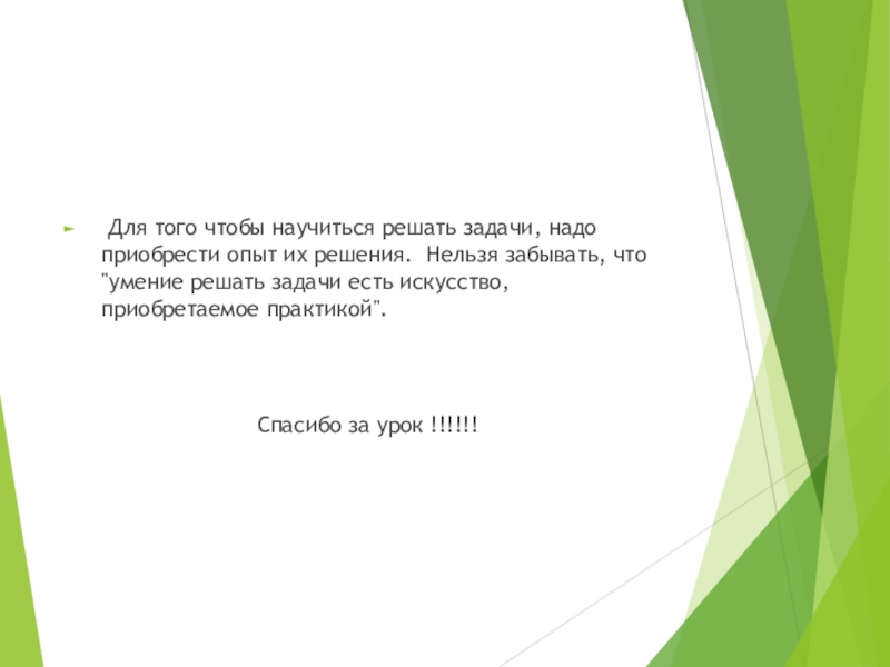 решения. Нельзя забывать, что "умение решать задачи есть искусство, приобретаемое практикой".