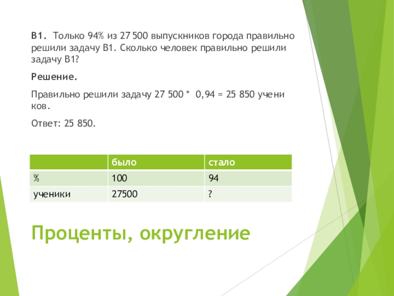 Правильно решили задачу 27 500 * 0,94 = 25 850 учеников.