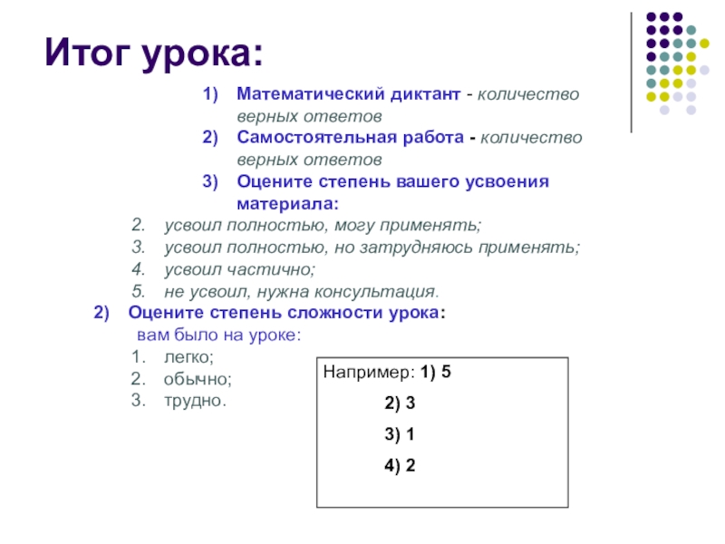 Например: 1) 5