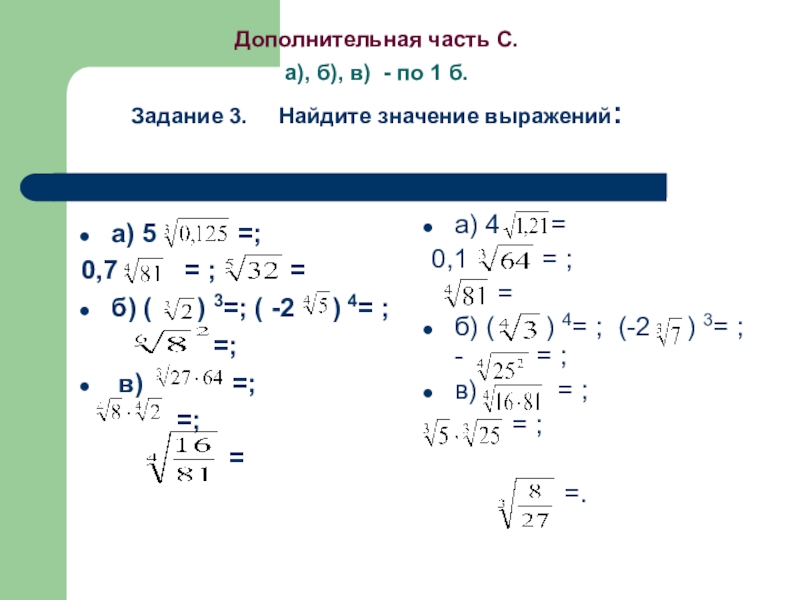 б) ( ) 4= ; (-2 ) 3= ; - = ;