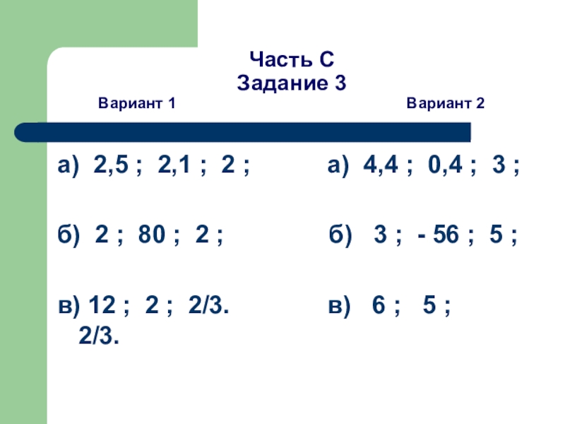 в) 12 ; 2 ; 2/3. в) 6 ; 5 ; 2/3.