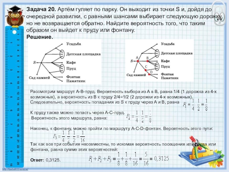 Слайд 20Задача 20. Артём гуляет по парку. Он выходит из точки S и,