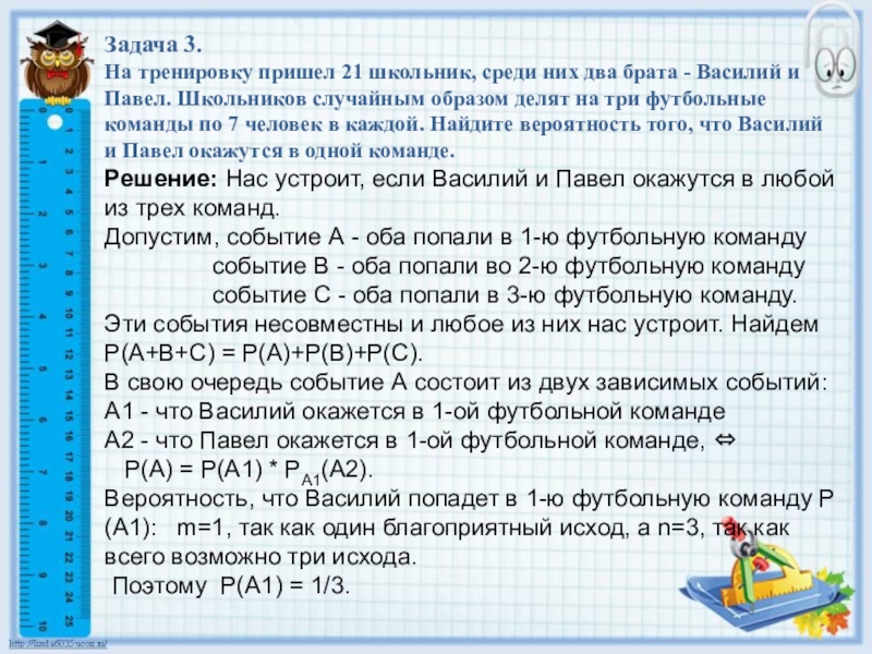 Решение: Нас устроит, если Василий и Павел окажутся в любой из трех команд.