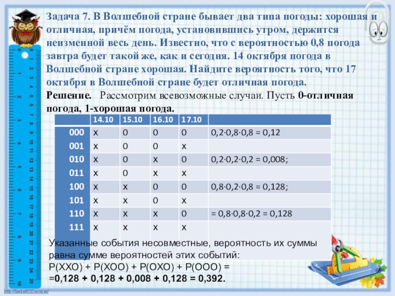 Слайд 9Задача 7. В Волшебной стране бывает два типа погоды: хорошая и