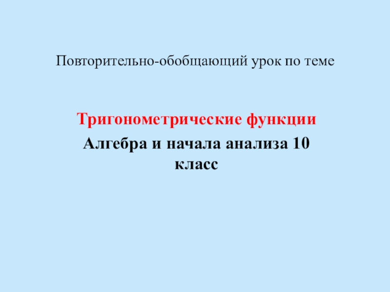 Повторительно-обобщающий урок по темеТригонометрические функцииАлгебра и начала анализа 10 класс