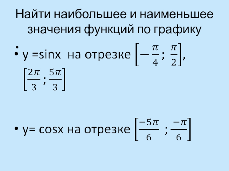 Слайд 6Найти наибольшее и наименьшее значения функций по графику