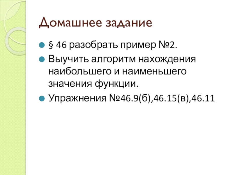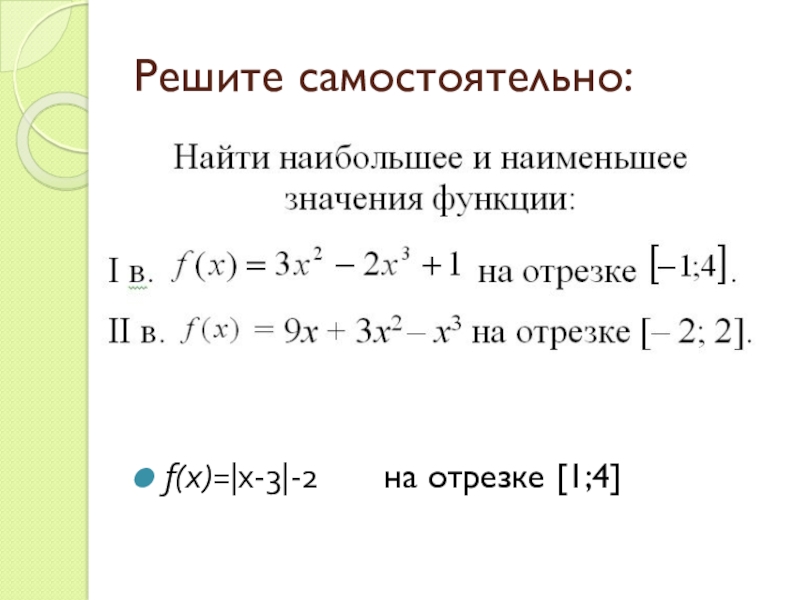 Найти наибольшее и наименьшее значение функции y=f(x) на отрезке [a;b]