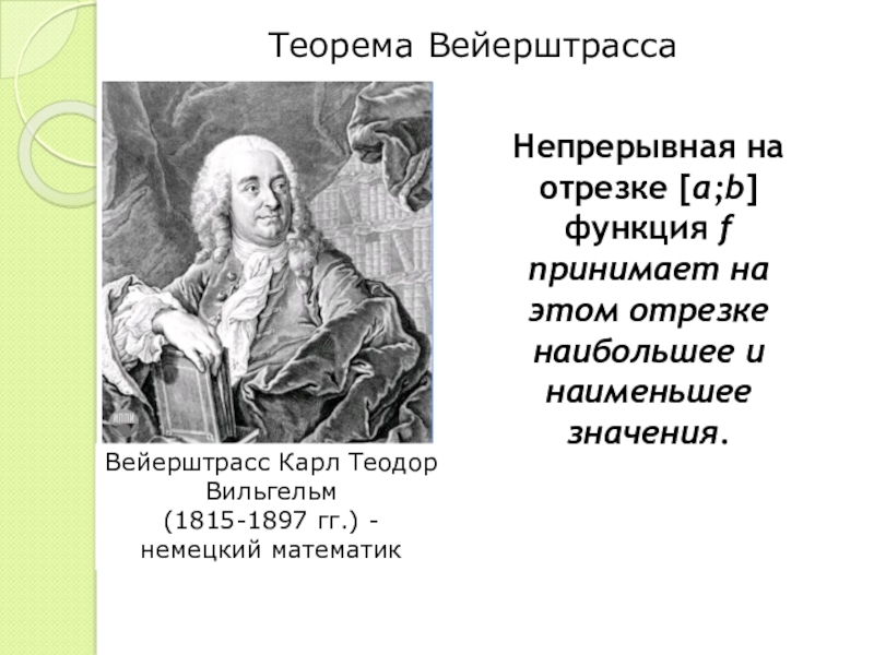 Непрерывная на отрезке [a;b] функция f принимает на этом отрезке наибольшее и наименьшее значения.
