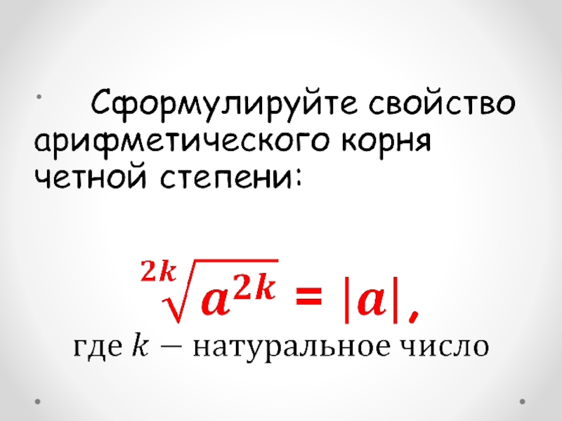 Слайд 1Арифметический корень натуральной степени