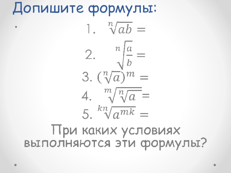 Слайд 5Допишите формулы: