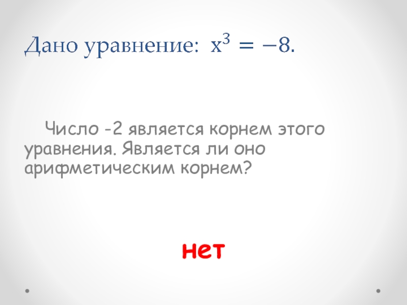 Слайд 3 Число -2 является корнем этого уравнения. Является ли оно арифметическим корнем?
