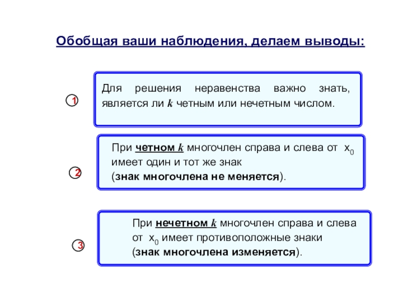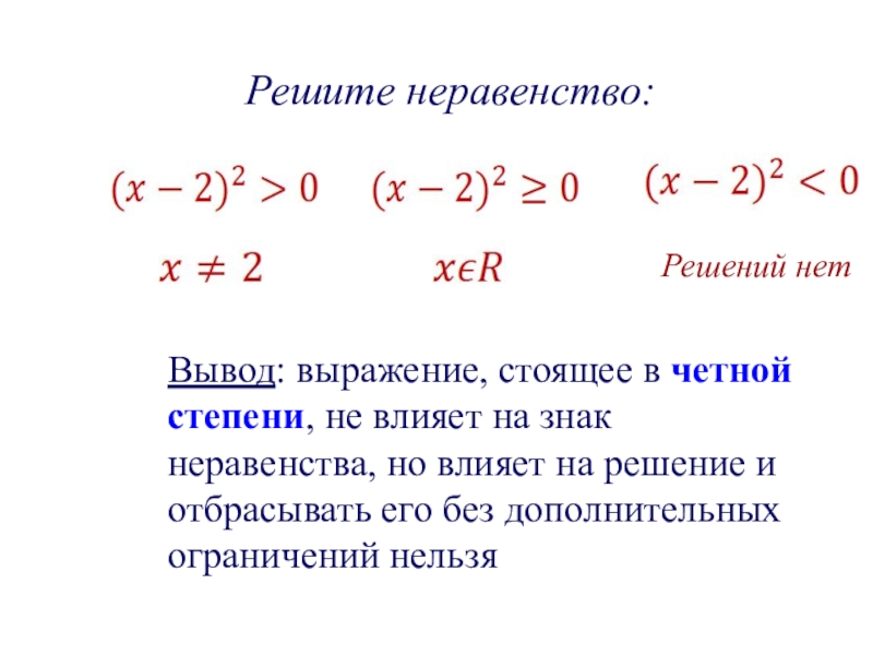 Вывод: y=x2 относится к категории особых случаев, так как четная степень функции не влияет на знак неравенства, перемены знака не происходит