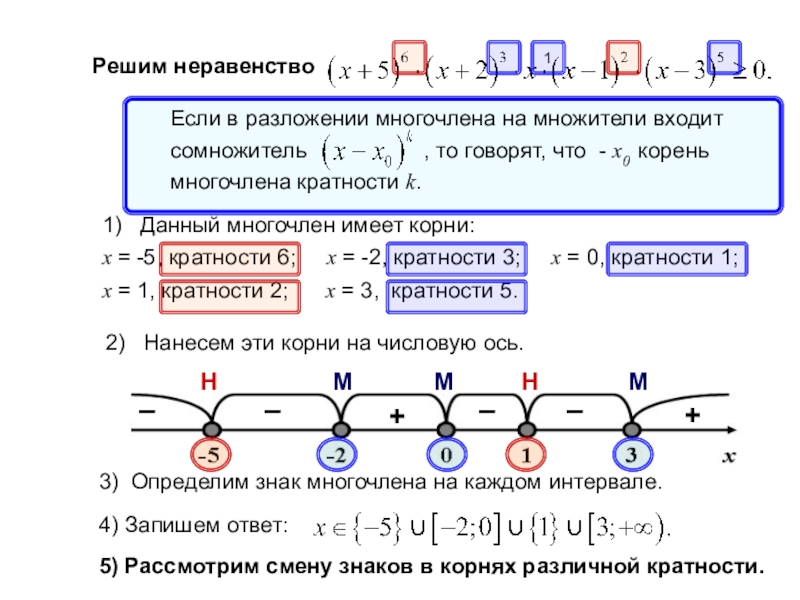 5) Рассмотрим смену знаков в корнях различной кратности.