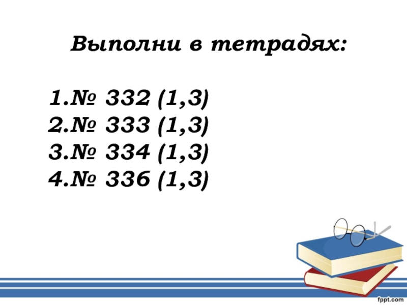 Выполни в тетрадях:№ 332 (1,3)№ 333 (1,3)№ 334 (1,3)№ 336 (1,3)
