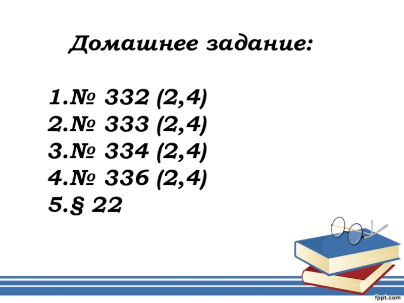 Домашнее задание: № 332 (2,4)№ 333 (2,4)№ 334 (2,4)№ 336 (2,4)§ 22