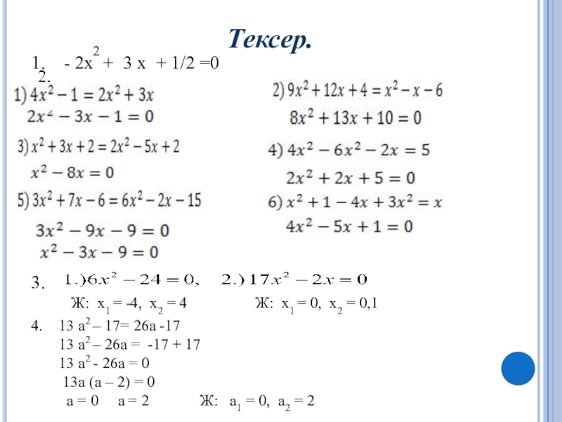 a = 0 a = 2 Ж: a1 = 0, a2 = 2