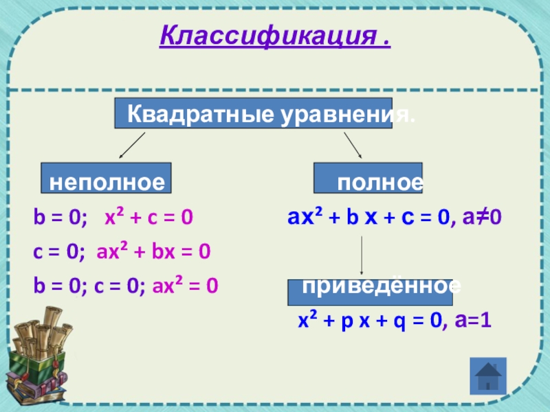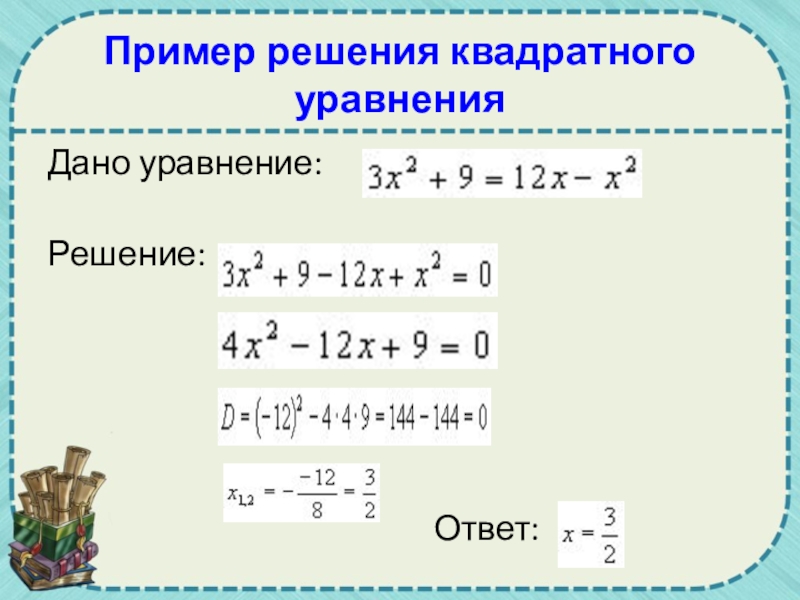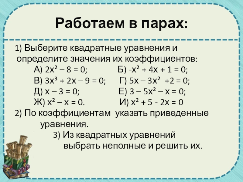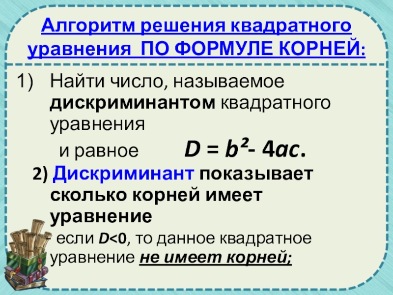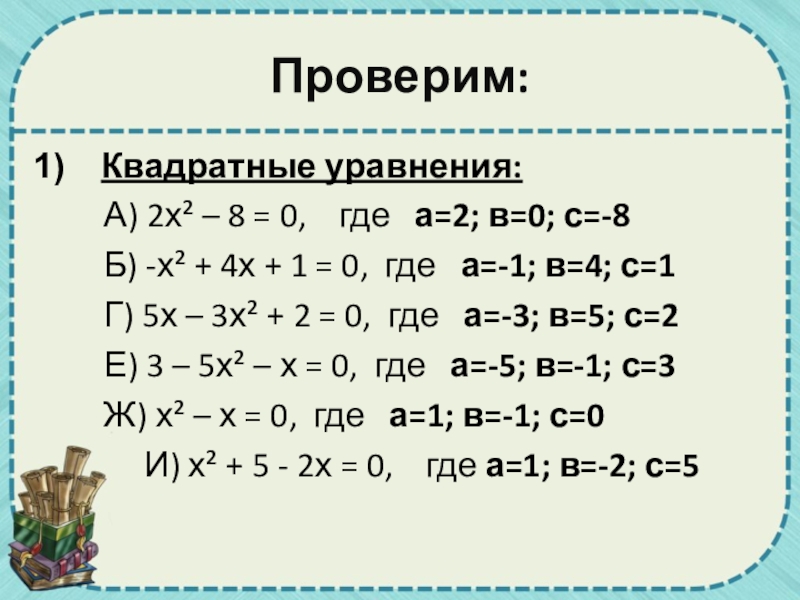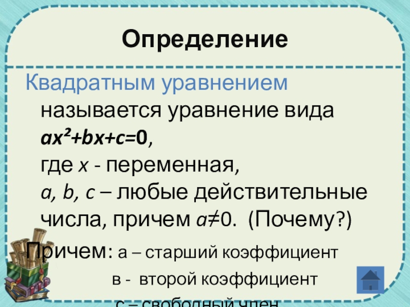 Квадратным уравнением называется уравнение вида ax²+bx+c=0,
