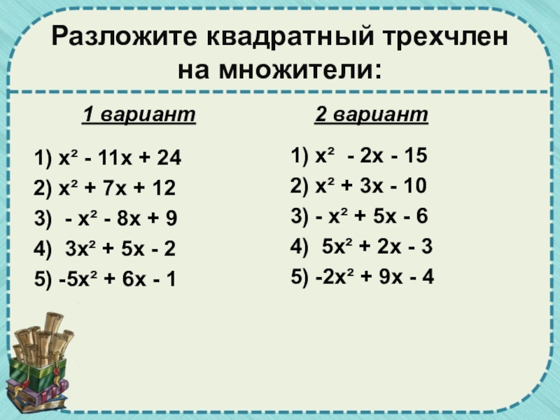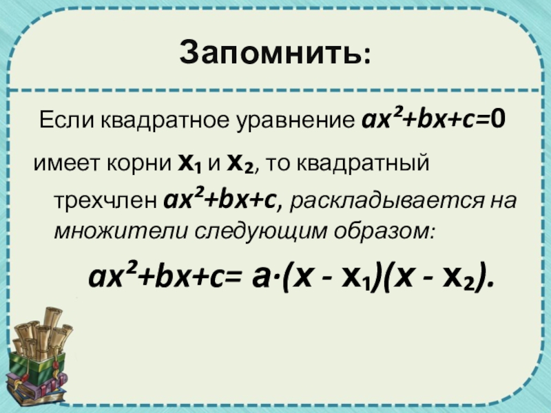 ax²+bx+c= а·(х - х₁)(х - х₂).