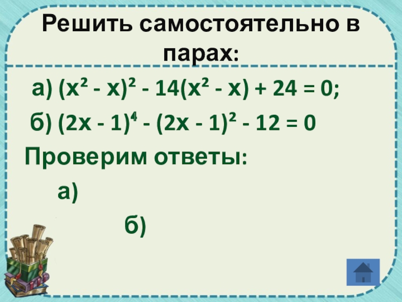 б) (2х - 1)⁴ - (2х - 1)² - 12 = 0