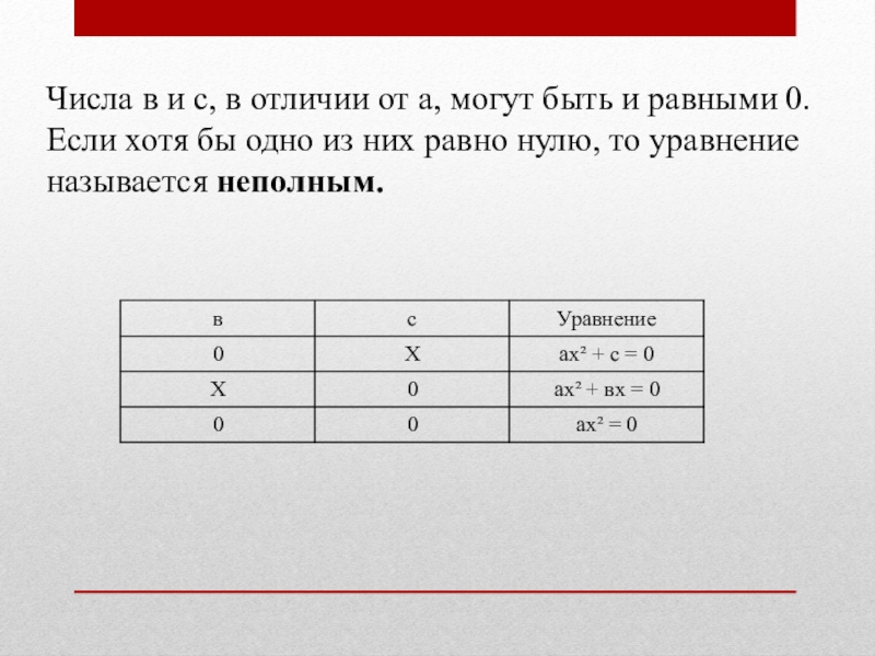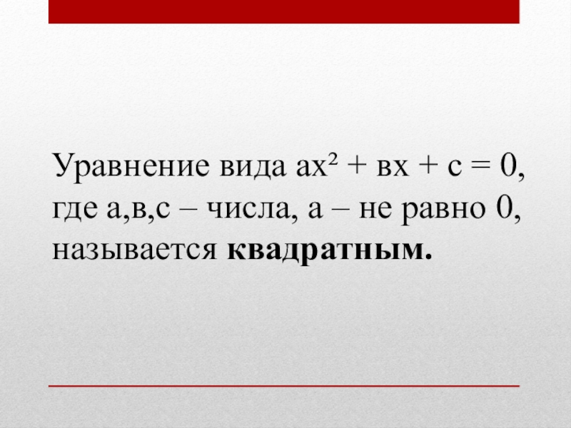 Слайд 5Уравнение вида ах² + вх + с = 0, где а,в,с
