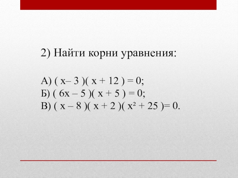 2) Найти корни уравнения:А) ( х– 3 )( х + 12 ) = 0;Б) ( 6х –