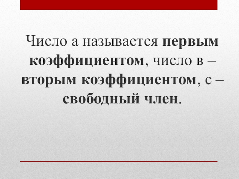 Слайд 6Число а называется первым коэффициентом, число в – вторым коэффициентом, с