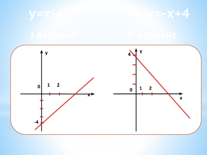 y=x-4           y=-x+4I вариантII вариантxy120-4x1204y